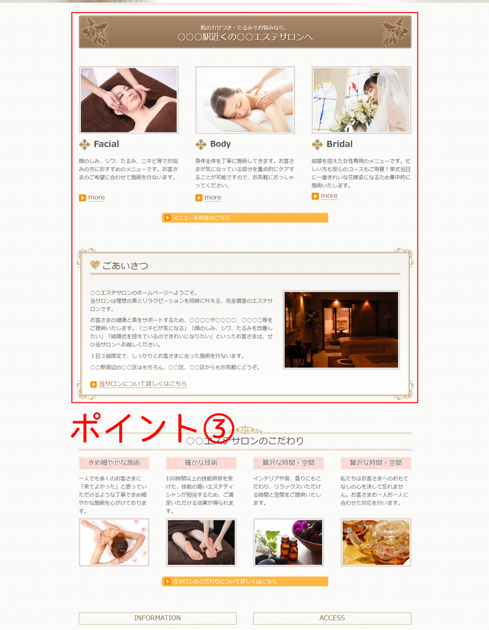 なぜなら、あなたのサロンの魅力がいっぱい詰まったホームページを、トップページ以外も見て「行ってみたい!」と訪問者に思ってもらいたいから。